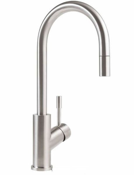 Bateria zlewozmywakowa z wyciąganą wylewką i pojedynczym mieszaczem.
