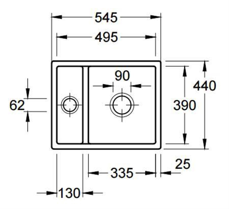 • Zlewozmywak ceramiczny, podblatowy 1,5 komorowy o wymiarach 54,5 x 44 cm.