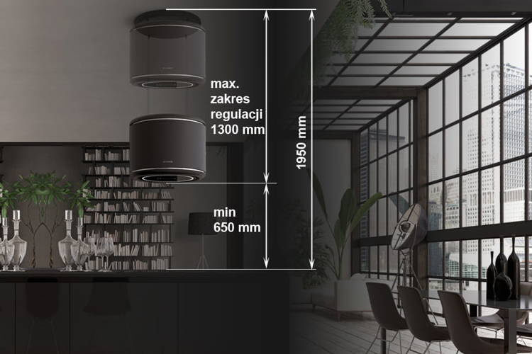 Odette to okap dyskretny, funkcjonalny, który jest w stanie zaspokoić potrzeby związane z codziennym gotowaniem. A jak inaczej możemy opisać Odette? Dostępny w dwóch wariantach kolorystycznych, czarnym i szarym matowym ten nowoczesny okap Faber wyróżnia się dwoma opaskami, które biegną wokół górnej i dolnej części cylindra, nadając wrażenie ruchu i rytmu. Lśniące stalowe opaski zapewniają uderzający kontrast w stosunku do ciepłych, matowych kolorów. Idealny cylinder otacza nowoczesną technologię i nadaje każdej kuchni niepowtarzalny, współczesny styl.