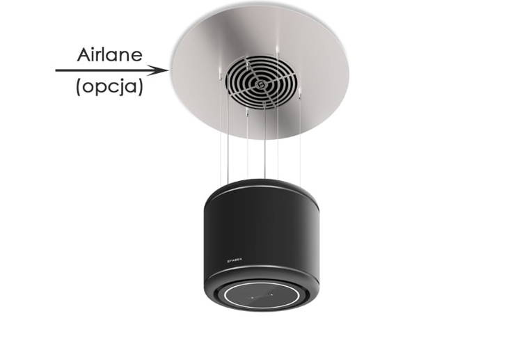 Okap wyspowy o szerokości 50 cm serii F-Light w matowym kolorze czarnym z energooszczędnym zespołem silnika EVO i możliwością zastosowania wyjątkowej technologii AIRLANE. Sterowanie sensorowe, pilotem, lub bezpośrednio z płyty Faber! Imponująca wydajność maksymalna: 640 m3/h.