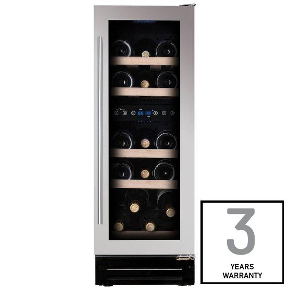 Model podblatowy z podwójną strefą temperaturową i możliwością przechowywania 17 butelek, wyróżniający się eleganckim wyglądem zewnętrznym i uchwytem drzwi ze stali nierdzewnej. Model DUNAVOX Flow-17 pasuje idealnie do nowoczesnej kuchni. Butelki spoczywają na solidnych drewnianych półkach w oszałamiającym, jasnobiałym wnętrzu. Należy zwrócić uwagę, że model ten jest przeznaczony do zabudowy podblatowej.