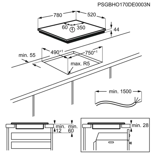 Wymiary wycięcia (W x S x G) [mm]: 44x750x490