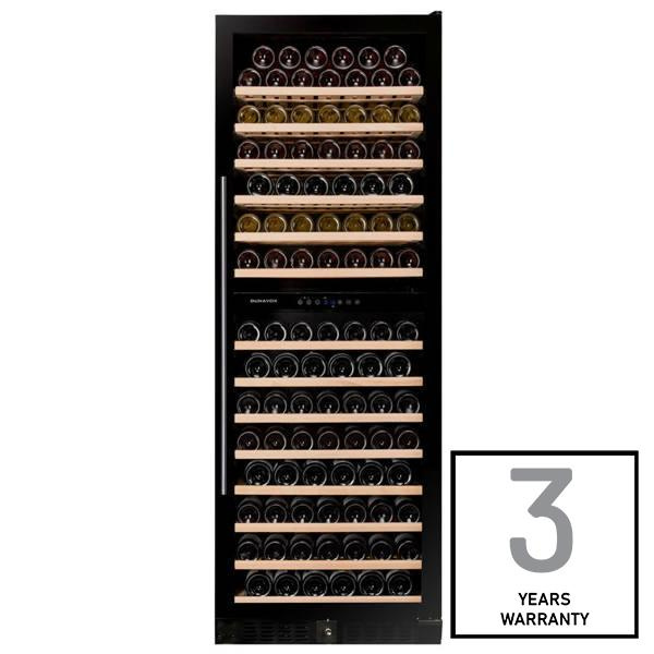 Dwustrefowy, wolnostojący model do przechowywania 181 butelek z serii Grande firmy Dunavox. Elegancki wygląd zewnętrzny - Wersja Inox posiada uchwyt ze stali nierdzewnej, a wersja czarna posiada uchwyt również w kolorze czarnym. DUNAVOX Grande-181 pasuje idealnie do nowoczesnych kuchni, hoteli i restauracji. Butelki są umieszczone na drewnianych półkach w oszałamiającym jasnoniebieskim wnętrzu. Temperatura w górnej strefie musi być niższa niż w dolnej. Należy pamiętać, że ten model nadaje się do użytku wolnostojącego lub do zabudowy.