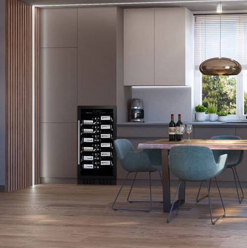 Jednostrefowy, wolnostojący model do przechowywania 70 butelek z serii Grande firmy Dunavox. Wyróżniająca się eleganckim wyglądem zewnętrznym i uchwytem ze stali nierdzewnej, DUNAVOX Grande-70 doskonale pasuje do nowoczesnych kuchni, restauracji i hoteli. Elegancki wygląd zewnętrzny i uchwyt ze stali nierdzewnej sprawiają, że DUNAVOX grande -70 idealnie pasuje do nowoczesnej , kuchni. Butelki są umieszczone na opatentowanych półkach i oświetlone z dwóch stron białym, bursztynowym i niebieskim oświetleniem LED. Należy pamiętać, że ten model nadaje się do użytku wolnostojącego lub do zabudowy.