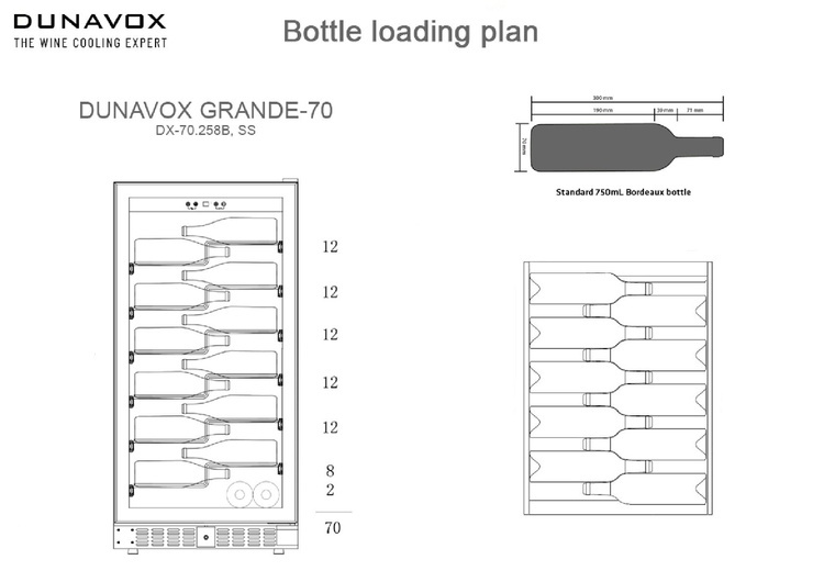 • Pojemność - ilość butelek (butelka Bordeaux 0,75 litra) 70 butelek Bordeaux