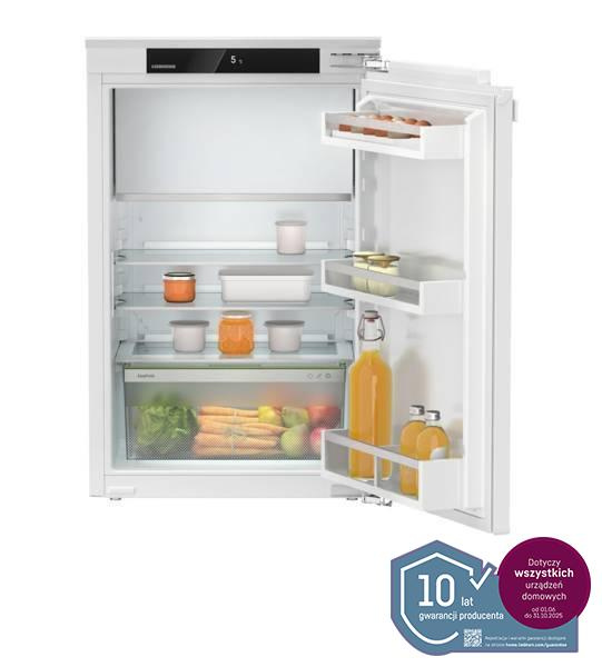 Szybki przegląd zawartości lodówki: Oświetlenie boczne LED zapewnia dobry widok na artykuły spożywcze. Diody LED są ustawione w taki sposób, że promienie światła docierają do góry i na dół. A ponieważ diody LED są zintegrowane równo z płaszczyzną ścianek bocznych, pozostaje zachowana cenna powierzchnia użytkowa.