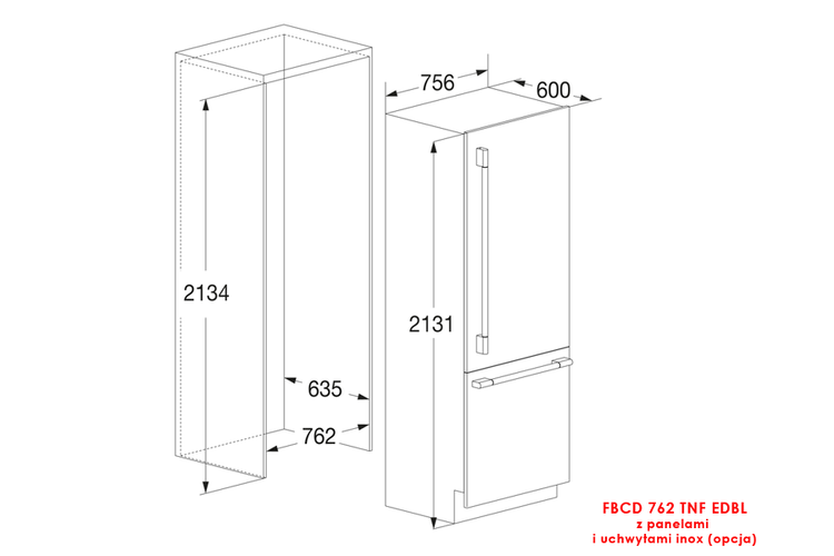 - Szerokość x Wysokość x Głębokość [mm]: 756 (30 cali) x 2131 x 595