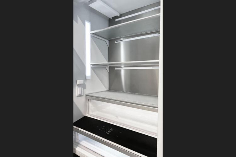 Elegancki, dotykowy panel sterowania w komorze chłodziarki oddzielne sterowanie dla każdej z 3 stref (chłodziarka/zamrażarka/szuflada). Wymuszony wentylatorem obieg powietrza chłodzącego.