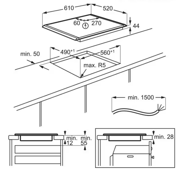 Wymiary wycięcia (W x S x G) [mm]: 44x560x490