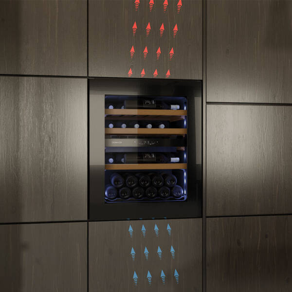 • Zintegrowany design:Zaprojektowana tak, aby idealnie komponować się z wystrojem kuchni lub baru, ta chłodziarka do wina idealnie wpasowuje się w każdą przestrzeń. Jej elegancki, minimalistyczny design zwiększa walory estetyczne Twojego domu.