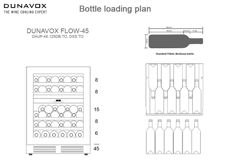 - Pojemność - ilość butelek (butelka Bordeaux 0,75 litra) 45