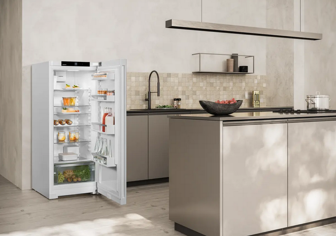 Purystyczna estetyka Twojej kuchni w pełnej okazałości: Nasze lodówki idealnie pasują do wnęki o głębokości 60 cm. Wystają jedynie drzwi, zapewniając optymalny dostęp do wpuszczanego uchwytu i klamki. Twoja kuchnia zawsze w centrum uwagi – z lodówką Liebherr jako główną atrakcją.