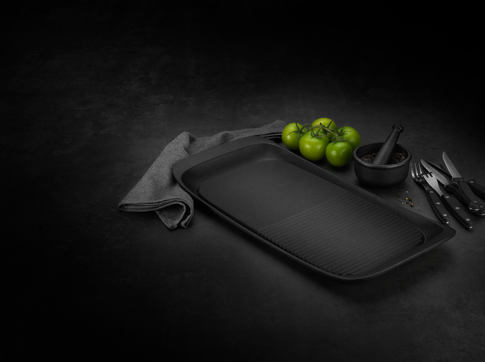 Ciesz się na co dzień smakiem jak z prawdziwego grilla dzięki płycie grillowej Maxi Sense Plancha Grill. Możliwość precyzyjnej regulacji temperatury na płycie indukcyjnej pozwala precyzyjnie zgrillować steki, przyrządzić chrupiące szparagi, a także idealnie podsmażyć przegrzebki, aby zachowały delikatną konsystencję w środku. Funkcja łączenia dwóch pól grzejnych umożliwia grillowanie większych porcji potraw zarówno na prążkowanej, jak i na płaskiej powierzchni. Gruba aluminiowa podstawa. Nieprzywierająca, łatwa do czyszczenia powierzchnia. Możliwość umieszczania w piekarniku (do 200°C). Tylko do płyt indukcyjnych. Wymiary: 51 x 25 cm