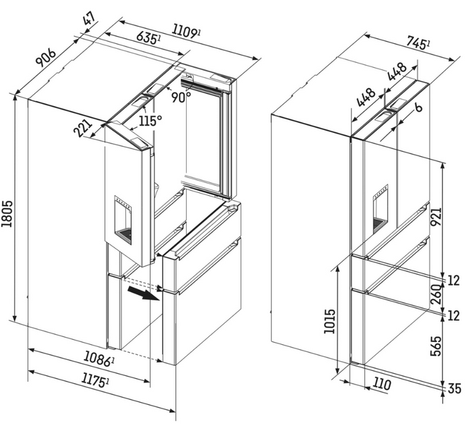 | Grupa produktów | Chłodziarko-zamrażarka z 2 szufladami i dozownikiem wody i kostek lodu |