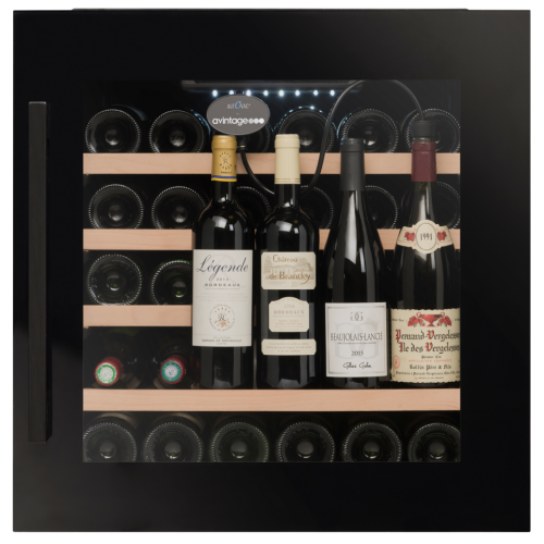 Winiarka AVI63CSZF do zabudowy we wnęce meblowej. Jednostrefowa o pojemności do 33 butelek wina.