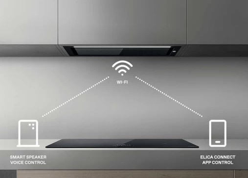 Nasze okapy kuchenne mogą być sterowane za pomocą asystenta głosowego i smartfona: aplikacja Elica app umożliwia ich uruchamianie, wyłączanie i dowolną regulację mocy ssania lub intensywności i tonu światła. Dzięki tej aplikacji można zawsze natychmiast skontaktować się z pomocą techniczną Elica, sprawdzić stan filtrów (również dzięki okresowym powiadomieniom) i dowiedzieć się, czy potrzebne jest czyszczenie i konserwacja.