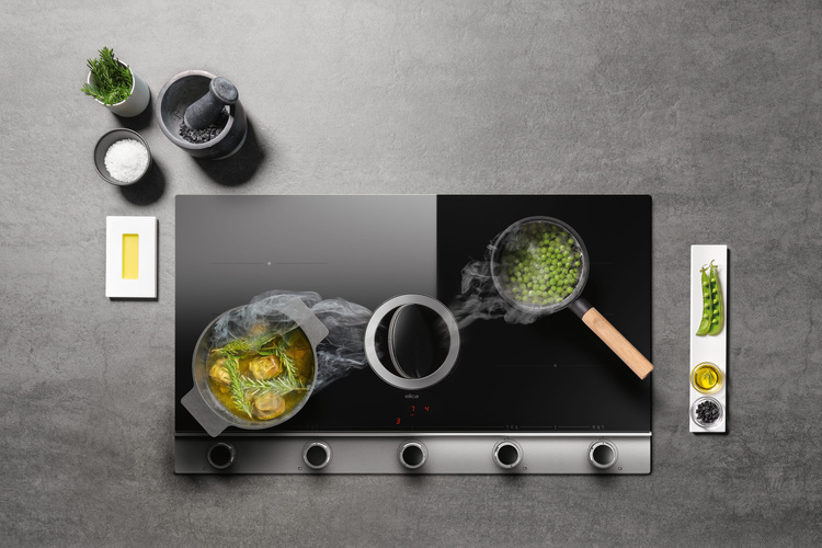 Gotowi na kulinarne wyzwania? W końcu będziecie mogli gotować w całkowicie ergonomiczny i intuicyjny sposób. Wyjątkowo wygodne w obsłudze, analogowe pokrętła sterujące są znakiem rozpoznawczym płyty zintegrowanej z okapem NikolaTesla Unplugged. Podobnie, jak charakterystyczna przegroda, oddzielająca obszar gotowania od obszaru sterowania. Centralnie umieszczona szklano-metalowa pokrywa przesłania strefę pracy wyciągu, nadając powierzchni płyty zadziwiającą gładkość i jednolitość formy. Powietrze jest zawsze czyste dzięki nowo opracowanemu filtrowi, który skutecznie oczyszcza powietrze z oparów i zapachów. Wymienny filtr zaprojektowany został z myślą o łatwym czyszczeniu i konserwacji. Najnowocześniejsze silniki zapewniają niski poziom hałasu i niskie zużycie energii nawet przy maksymalnej mocy. Wśród wielu możliwości będziecie w stanie roztopić masło lub czekoladę unikając ciągłego mieszania, zoptymalizować powolne gotowanie lub uniknąć kipienia wrzącej potrawy podczas szybkiego gotowania. Można również aktywować podwójną strefę gotowania, gdy konieczne jest przygotowanie potraw w naprawdę dużych naczyniach.