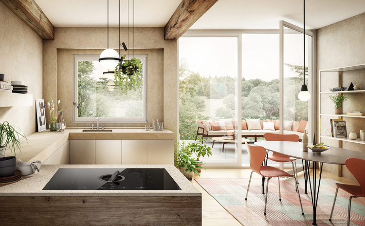 Płyta indukcyjna i okap? W jednym urządzeniu. Wystarczy jedno dotknięcie, aby uwolnić całą moc urządzenia. Można też cieszyć oko dzięki kontrastowi nieskazitelnej czerni powierzchni płyty a białym podświetleniem elementów sterujących. Można też korzystać z wyrafinowanych, automatycznych funkcji, będących zawsze pod ręką i dopasowanych do potrzeb chwili - od powolnego gotowania przydatnego przy podgrzewaniu mleka czy bulionu, przez przygotowywanie kremów oraz sosów bez ich zagotowania, po utrzymywanie temperatury gotowych potraw. Można również aktywować dwie sąsiednie strefy, aby móc równomiernie gotować w większych naczyniach. Urządzenie dba o pochłanianie zbędnych oparów czy zapachów, automatycznie dostosowując intensywność pracy. Większa wydajność wynika między innymi z unowocześnionego filtra, chroniącego przed tłuszczami i nieprzyjemnymi zapachami, zaprojektowanego również z myślą o łatwym czyszczeniu i konserwacji.
