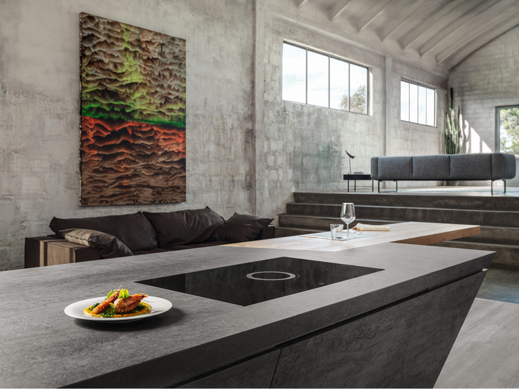 Indukcyjna płyta kuchenna z wbudowanym mechanizmem pochłaniania oparów. Aktywuje się tylko jednym gestem, filtruje i oczyszcza powietrze.