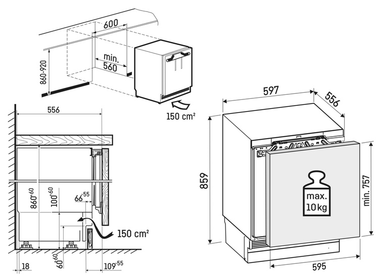 Wymiary zewnętrzne: wysokość / szerokość / głębokość 85,9 / 59,7 / 55,6 cm