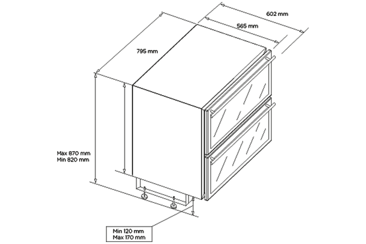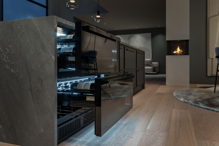 Zaprojektowana w Norwegii chłodziarka do krótkookresowego przechowywania wina to rozwiązanie dla kuchni z otwartymi przestrzeniami i dużą ilością miejsca na blacie. Dzięki niej możesz umieścić butelki z winem w dwóch dużych szufladach pod kuchennym blatem. Podwójnie szklone fronty szuflad z przyciemnianego szkła zapewniają ochronę wina przed światłem. Oferta szufladowych urządzeń podblatowych Norcool obejmuje chłodziarkę, zamrażarkę i winiarkę o tych samych wymiarach umożliwiających ich montaż obok siebie.