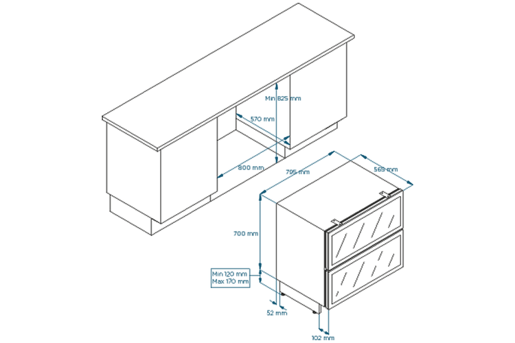 - Winiarka szufladowa jednostrefowa do zabudowy