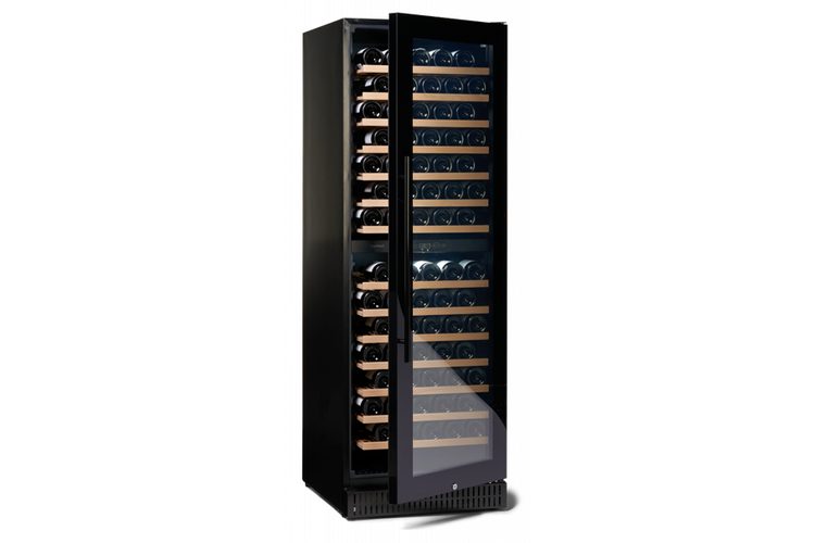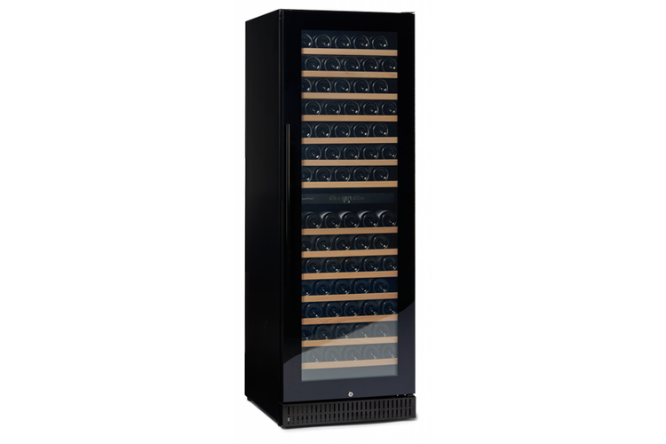 Ponadczasowy design, drewniane półki i przyciemniane szyby, nadają tej szafce na wino ekskluzywny charakter. Dwie strefy temperatury dają możliwość stworzenia idealnych warunków przechowywania zarówno dla czerwonego, jak i białego wina. Ta przestronna winiarka pomieści 159 butelek standardowej pojemności 75 cl. Szafka jest wolnostojąca, co ułatwia jej ustawienie w dowolnym miejscu.