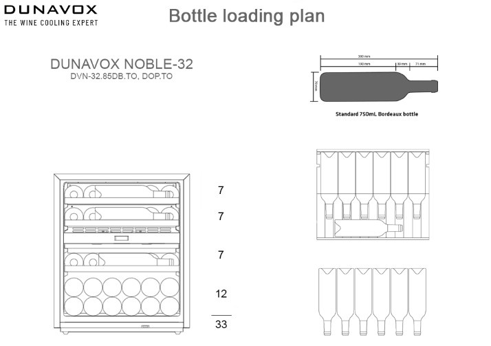 - Pojemność - ilość butelek (butelka Bordeaux 0,75 litra) 32