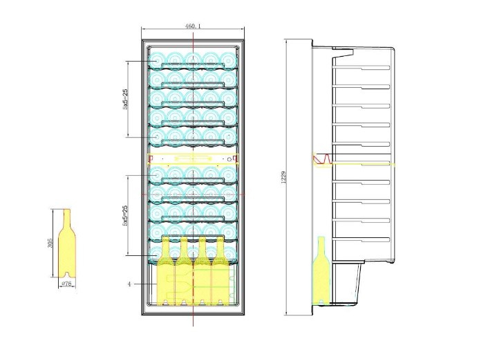 Model z dwiema strefami na 50 butelek. Chłodziarka ma zagłębioną klamkę drzwi, a butelki są podparte na solidnych drewnianych półkach. Ta chłodziarka umożliwia przechowywanie otwartych butelek. Górna strefa musi być zimniejsza niż dolna, różnica temperatur między strefami nie może przekraczać 6°C. Ta jednostka nie nadaje się do zabudowy lub pod blatem.