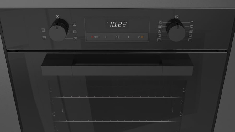 Wielofunkcyjny piekarnik do zabudowy linii URBANTECH posiada wykończenie z czarnego szkła i klasę energetyczną A. Duża komora piekarnika ma pojemność 65 l. i została pokryta emalią UltraBlack (bez zawartości Niklu), dzięki której powierzchnia jest gładka i łatwa w utrzymaniu czystości. Wewnętrzne oświetlenie zapewnia dobrą widoczność podczas gotowania, a dzięki systemowi Soft Closing, drzwi piekarnika domykają się cicho i płynnie. Dla maksymalnej wszechstronności i wygody, piekarnik URBANTECH został wyposażony w precyzyjny, cyfrowy wyświetlacz i tradycyjne pokrętła. Korzystanie z różnych ustawień piekarnika jest w ten sposób proste i natychmiastowe. Znajdziesz tu również różne tryby gotowania, które pozwolą Ci wyrazić swoją kreatywność w kuchni.