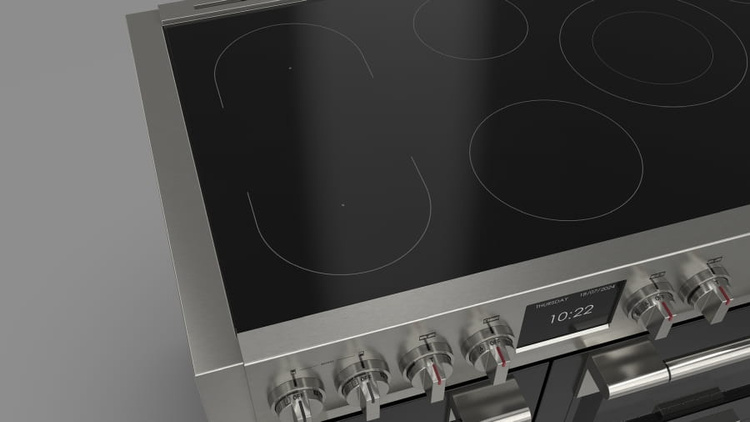 Seria Sofia Induction, dostępna teraz w nowej wersji 48”, stanowi wyrafinowany wyraz wzornictwa FULGOR MILANO. Płyta grzewcza jest wyposażona w siedem mocnych stref indukcyjnych, w tym zarówno elastyczną strefę FLEXI, jak i wydajną strefę DUAL MAX POWER. Intuicyjne pokrętło sterujące umożliwia regulację zarówno płyty grzewczej, jak i dwóch wydajnych piekarników wielofunkcyjnych z pyrolizą. Główny piekarnik 30” wraz z 18” piekarnikiem pomocniczym potwierdzają wszechstronność SOFIA, czyniąc ją elastycznym urądzeniem zdolnym do zwiększenia kreatywności profesjonalnych szefów kuchni. Kuchnia wolnostojąca Fulgor Milano FSRC 4807 P MI MK 2F jest dostępna w Polsce na indywidualne zamówienie w wersji przeznaczonej i certyfikowanej na rynek EU.