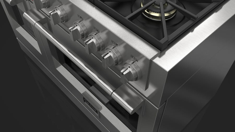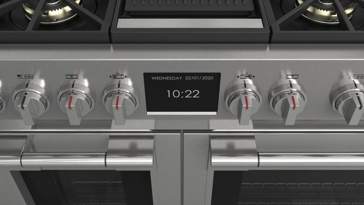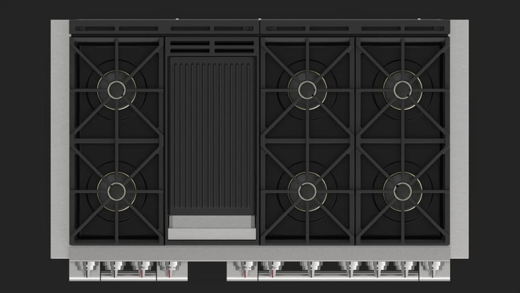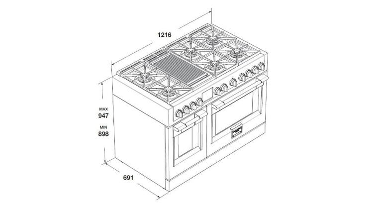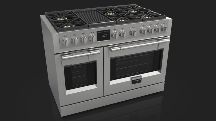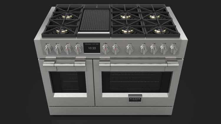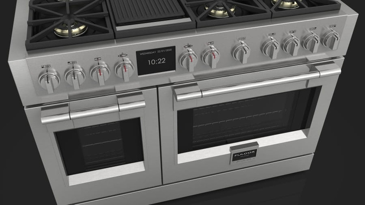Imponująca, ciężka kuchnia wolnostojąca o szerokości 48 cali. 6 palników gazowych Crescendo "5-w-1" + jeden, podłużny pod płytą Teppanyaki. Dwa wielofunkcyjne piekarniki elektryczne. Stal nierdzewna, duże rozmiary i moc, solidność wykonania i design w stylu urządzeń profesjonalnych. Fulgor Milano FSRC 4807 2P MK 2F to najmocniejsza pozycja w ofercie kuchni wolnostojących tej firmy i jest dostępna w Polsce na indywidualne zamówienie w wersji przeznaczonej i certyfikowanej na rynek EU.