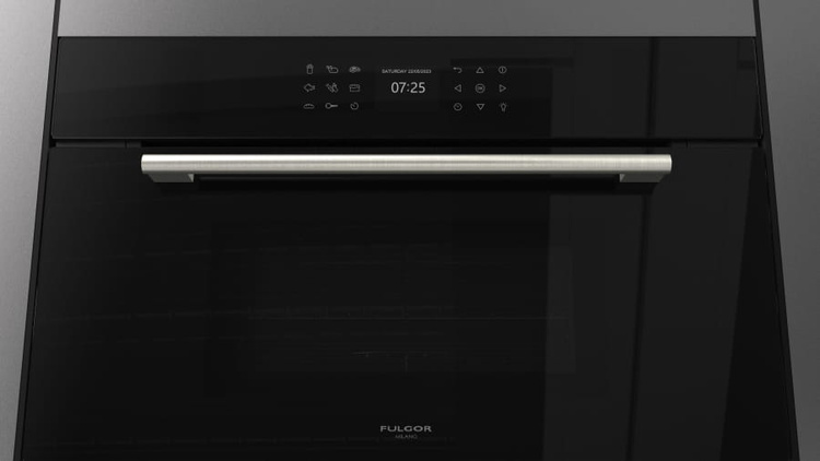 Wielofunkcyjny piekarnik XXL Fulgor Milano FCO 9615 TEM 2F BK o szerokości 90 cm z rożnem obrotowym