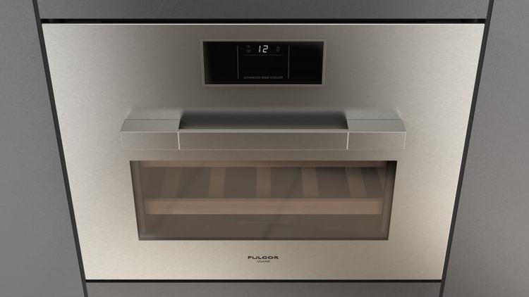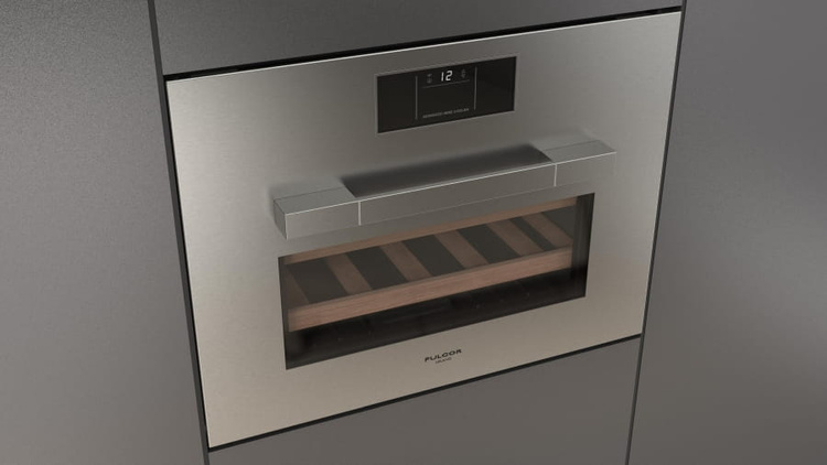 Jednostrefowa chłodziarka do wina z obiegiem chłodzonego powietrza w komorze wykonana ze stali nierdzewnej. Wymiary, proporcje, wykończenie oraz charakterystyczne, eleganckie elementy jak uchwyt pozwalają na zestawienie jej z innymi urządzeniami Fulgor Milano z tej samej linii.