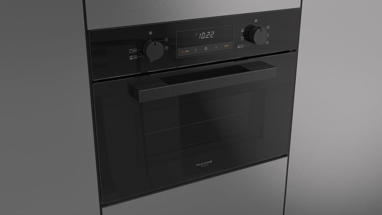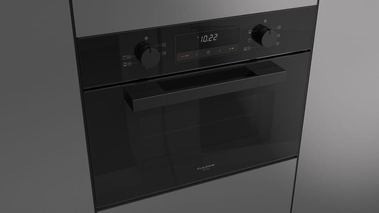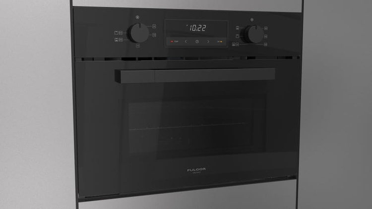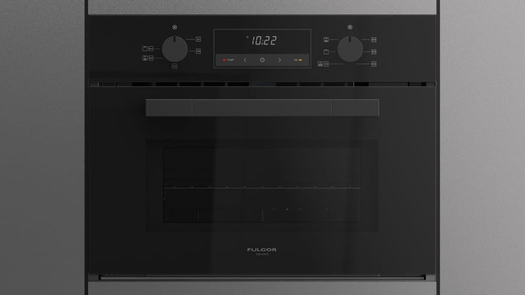 Kompaktowa kuchenka mikrofalowa do zabudowy z funkcją grilla Urbantech Fulgor Milano, czarne szkło
