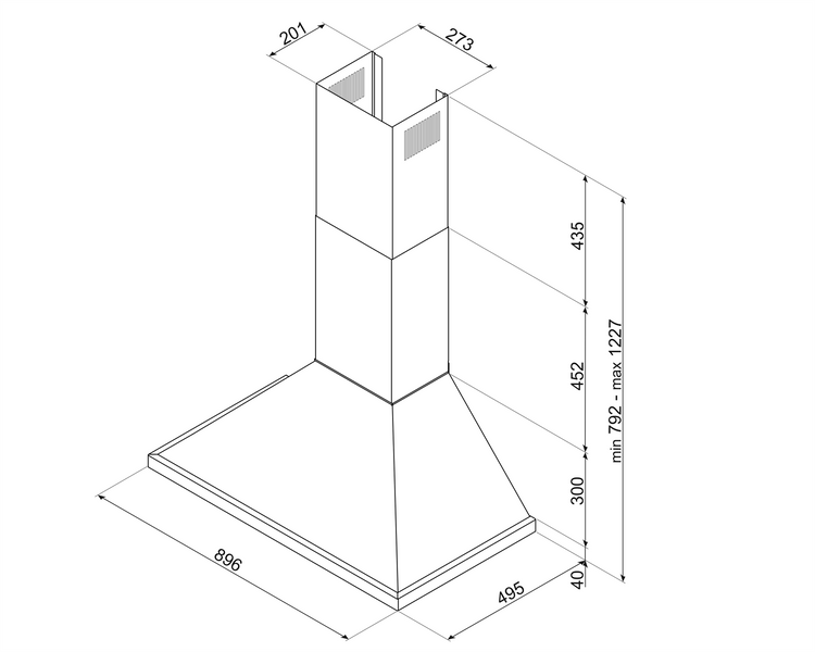 - Minimalna odległość od płyty elektrycznej: 650 mm