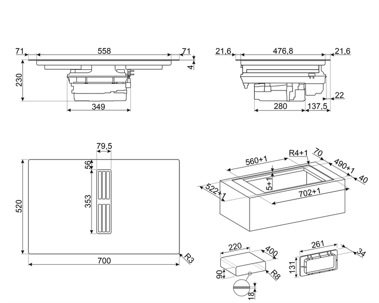 - Wymiary prawej strefy Multizone: 39.5x22.0 cm