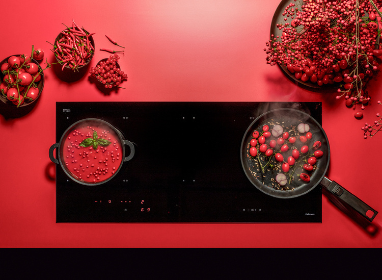 Płyta indukcyjna Panoramiczna 88 cm cztery pola, ze sterowaniem okapem