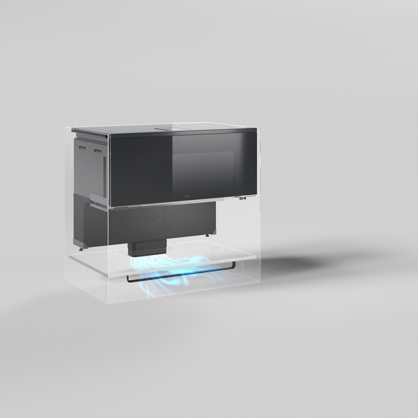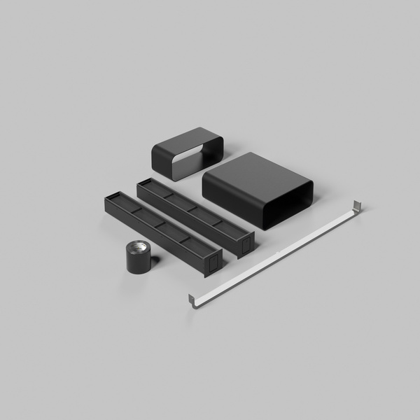 Z zastosowaniem tego zestawu urządzenie może być instalowane jako pochłaniacz. Filtrowane powietrze jest przenoszone do cokołu szafki kuchennej i ulatnia się na zewnątrz w sposób rozproszony. Otwór wentylacyjny może być wykończony profilem chromowanym, który jest w komplecie.